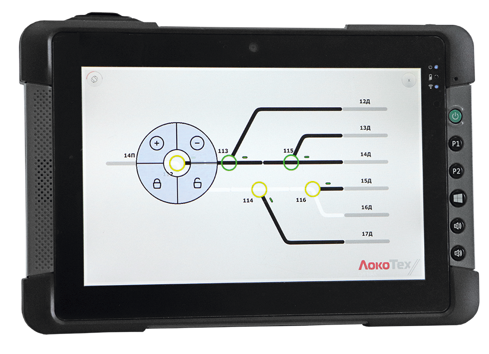 The solution featuring the ability to switch the point from a portable tablet via radio channel, or locally using a key located on the track box. The driver can move the switch and control its position directly from the locomotive's cabin, without wasting time going down the track and moving each switch manually. Once in the end position, the point is locked to prevent accidental movement.
